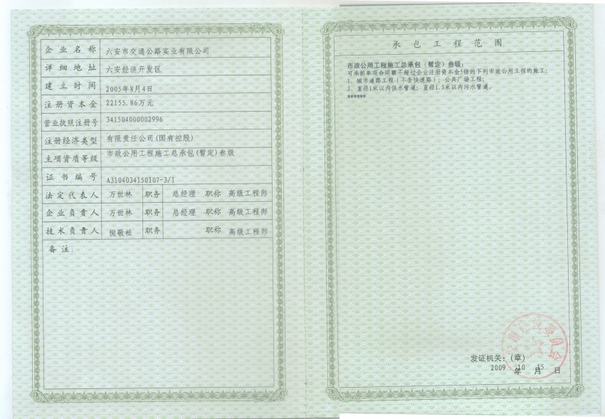 公司取得ISO9001認證及市政總承包三級資質(zhì)